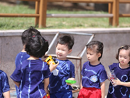 컬러비즈 만들기에 앞서.선생님의 설명을 열심히 듣고 있는 아이들..