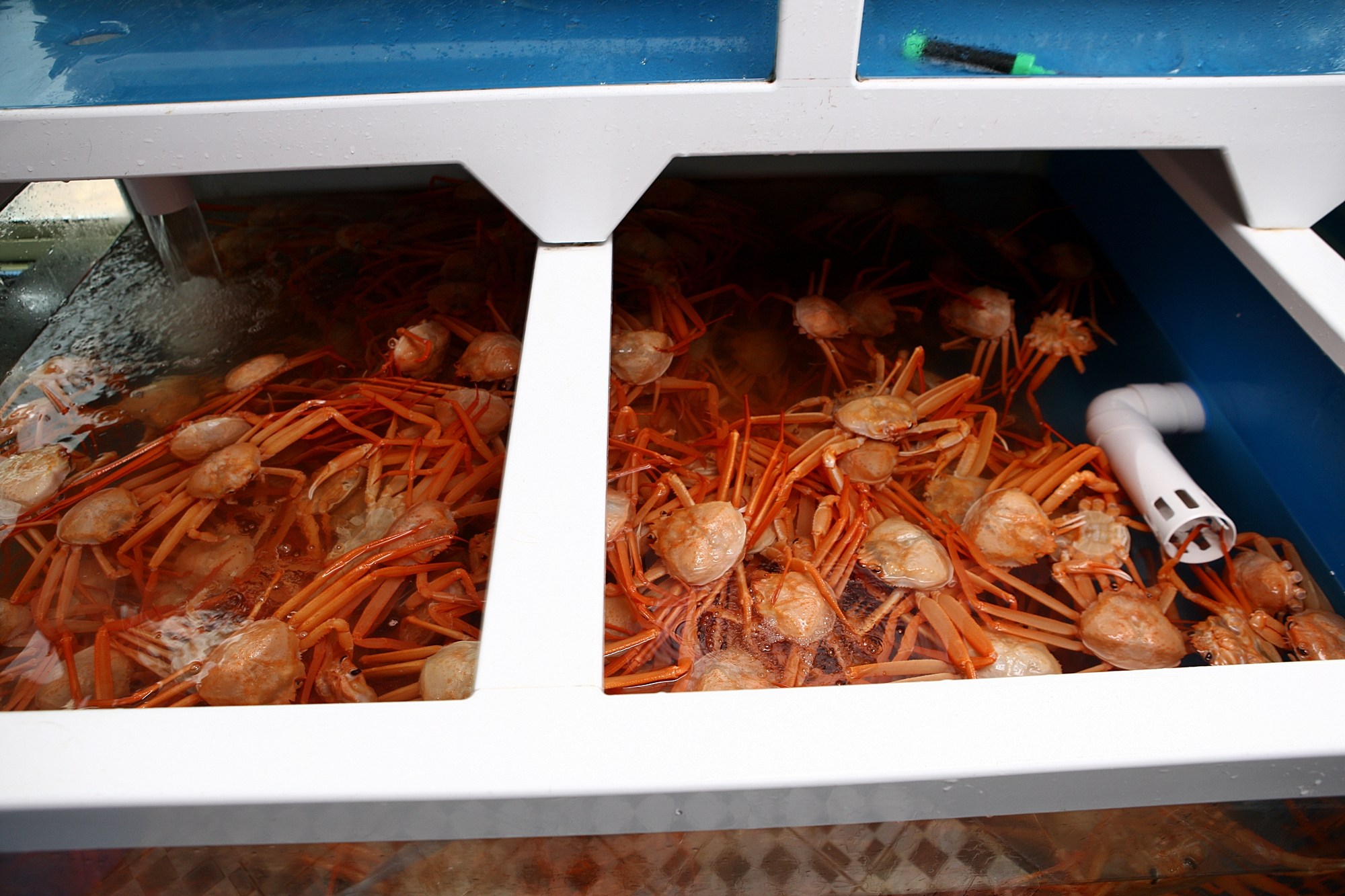 수족관 깨끗히 청소하고 바닷물 교체하고 신선한 홍게들을 수족관 안으로 넣습니다.생물이기 때문에 빠르게 회전을 해야합니다.그만큼 매상이 매출은 높으니 크게 걱정하실 필요없고 본사의 지침대로 홍게 수족관 관리 열심히 해주시면 됩니다~수족관 갯수는 매장의 규모와 평수 매출에 따라 결정이 됩니다.상담하실때 정하시면 될것 같습니다.